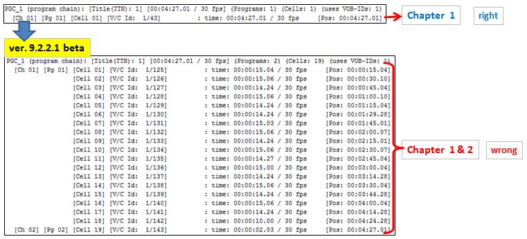 (4) all : dummy chapters of last of each title are convined to song. This is almost no problem because dummy chapters exist for making next chapter button effectve and are very short.
