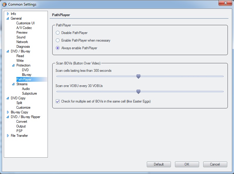 I made sure that I had enabled PathPlayer, but DVDFab didn't let me change DVD playback order and jump to first menu when disc inserted.