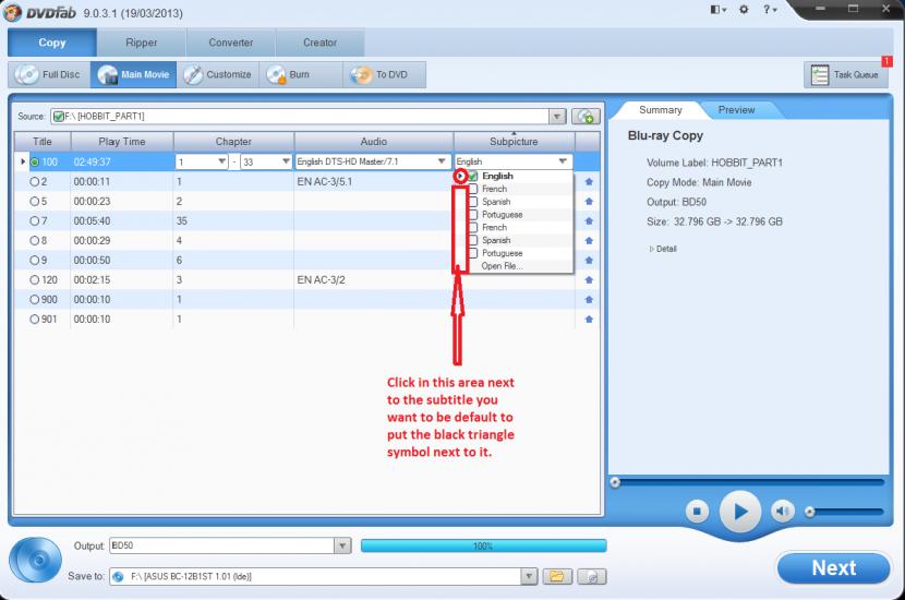 ( I see in Dvd Fab under subpicture a box to be ticked? and an arrow to be selected? What should i do there)Attachment