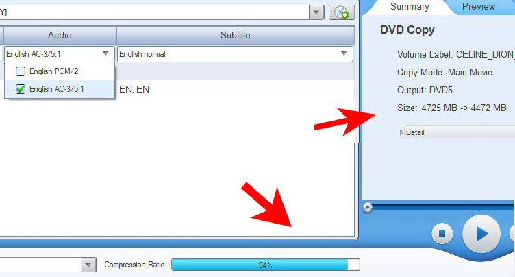 When you uncheck English PCM/2 the Size in the Summary section doesn't change nor does the Compression Ratio on the bottom.