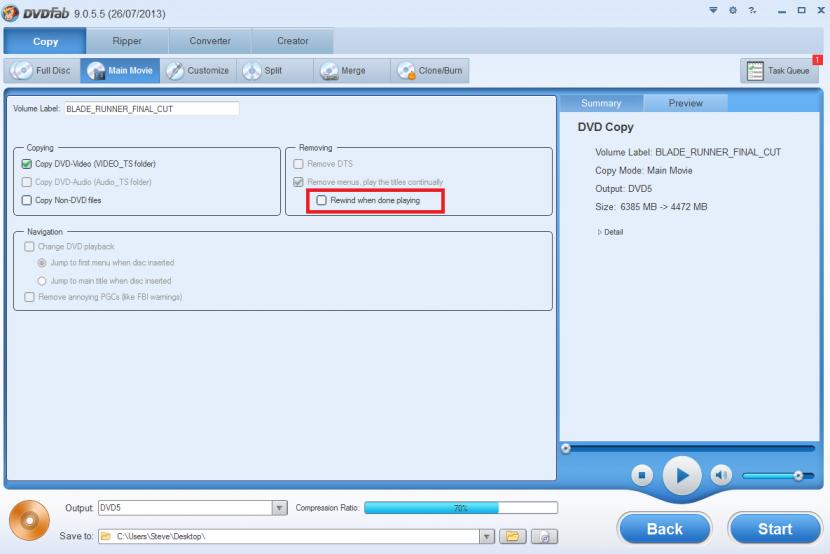 When did DVDFab start looping when just copying Main Movie. I just updated to v9.0.5.5 and now main movie loops. What up with that? Is there a way to stop it from looping?