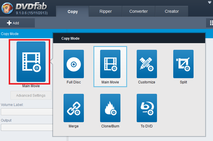 On the new DVDFab 9.1.0.6 there isn't the choice to only full disk copy the main movie. Am I missing something here?