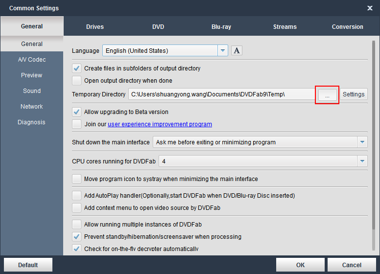 Thought I had a problem copying Cinderella to disk but now I find out I can't copy any movie to a DVD disk. I changed to Win 10 a few weeks ago and this it first time I have tried make a disk. Have been able to copy to a thumb drive. I get failed to create directory. then I gives directory name C/users/Owner/documents/DVDFAB/Temp/then name of movie