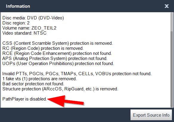 Invalid PTTs, PGCIs, PGCs, TMAPs, CELLs, VOBUs protection not found.