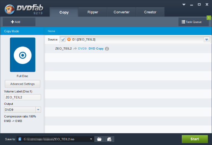 I have a DVD that is read, but it shows only 0 MB in the overview and finally it creates an ISO size of 1.18 MB.