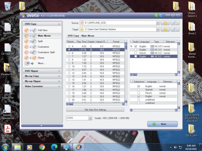 - Out of curiosity, I tried to use an older version of DVDFab, 8.0.1.6. It read the disc correctly as per the attached jpg.