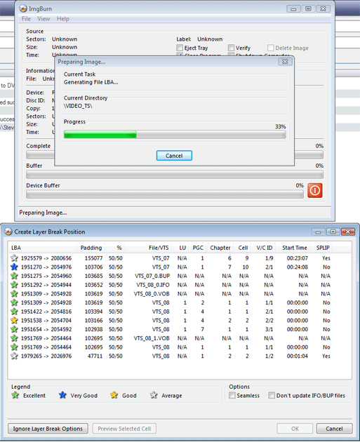Originally posted by IPopov50 View PostYou are welcome. ImgBurn giving you an option to select layer break point because sometimes it's important to choose different from standard, but let's not go there. BTW, layer break point it's a point where one layer ends and another starts. Program has to create sort of buffer around this point for seamless transition.