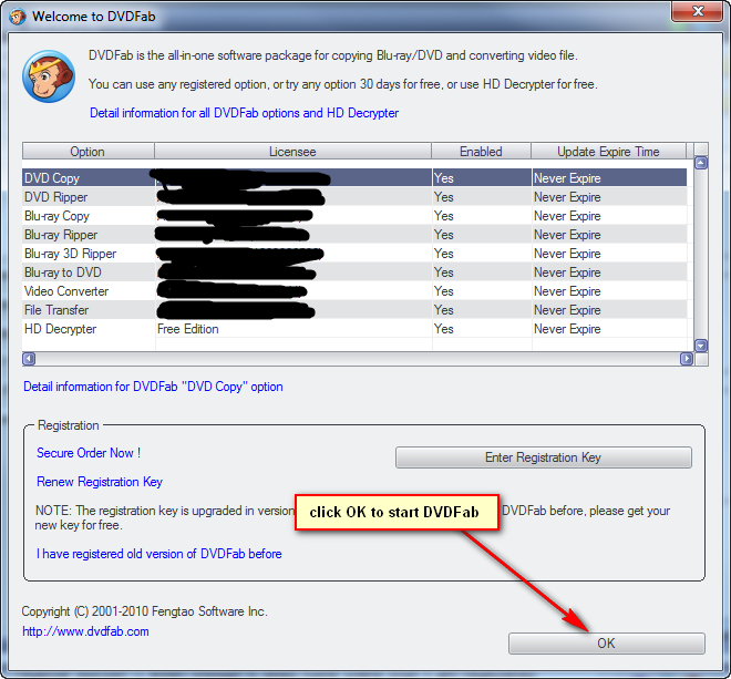 I am trying to install Dvdfab on my laptop, when I click on the short cut it brings up a registration status (?) window, in it, it has dvd to dvd enabled, yes, expire never, but it wont run the program, just options to register, not sure what to do? tried to delete dvdfab all through my computer and reinstall, dont know what another poster was talking about regarding choosing to run it through administrator? not such option throughout installation that I can see.