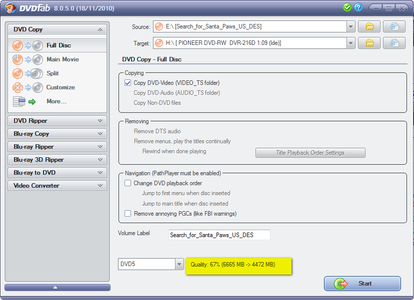 I have tried it with pathplayer on and disabled but to no avail. It keeps showing 41.093GB with a quality of 10%. I have the latest version 8.0.5.0 and Im not using a trial version.