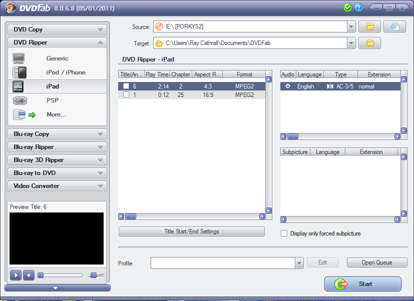 Tried both v8.0.6.6 & v8.0.6.8 and the titles were not all listed and the time stamps were incorrect 2:14 instead of 1:37:31 as shown in v7.0.9.3. Same problem with DVD Copy as the total disc size was shown as 100 MB at 100%. I had a similar problem with ripping Blade and have yet to try v8.0.6.8 to see if the problem is still there, but suspect that is. Porky's II DVD played perfectly in VLC, HP Media, and Windows Media Player, as did Blade. Both DVD's worked on all of my Blu-ray and DVD players.