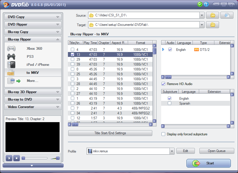 I'm trying to rip a CSI disc, but I am presented with about 2-4 titles per episode. I've included a screenshot. How do I know which title to select? None of the titles will play in the Preview box on the bottom left either.