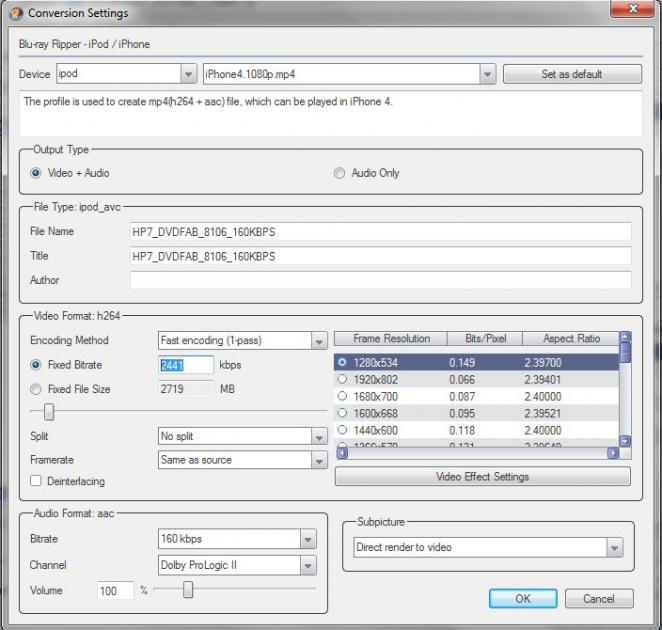 Dolby ProLogic II (160 kbps) with 100% volume