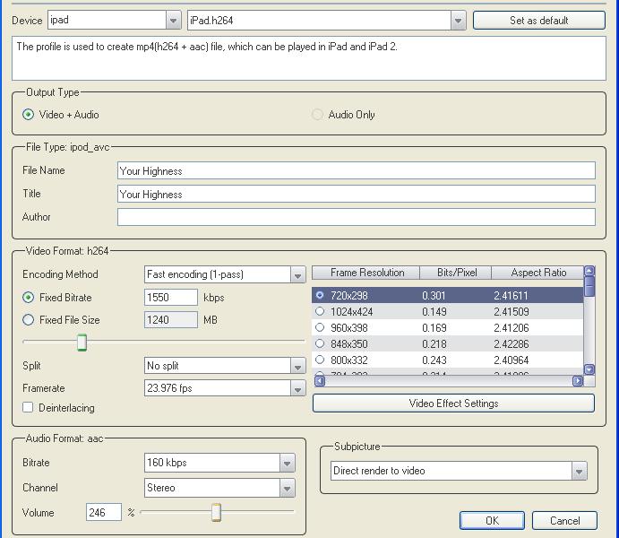 Codec: iPad.h264 or iPhone4.h264