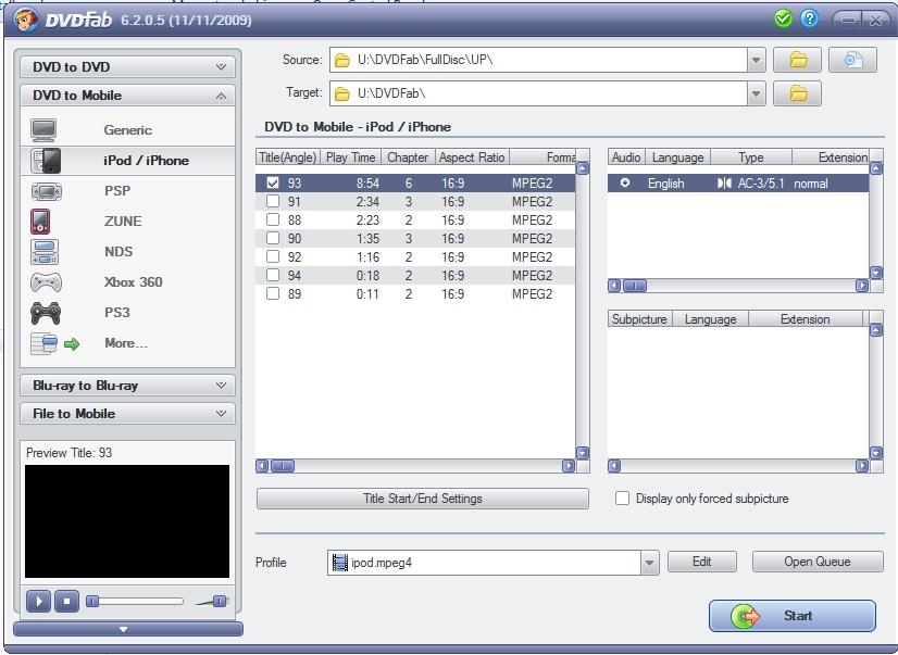 When I ripped it from "DVD to DVD" onto my HD, everything is fine. I then direct my "DVD to Mobile" (ipod) to the correct directory (as I have done numerous other times) and there are only a few short (max 8 minute) files to pick from, not the usual long (1.5 hours) selected. In fact the one selected is a coming soon clip.