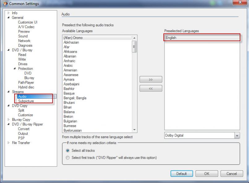 In DVD or Blu-ray ripper, is there a way to set up default language an subtitles ?