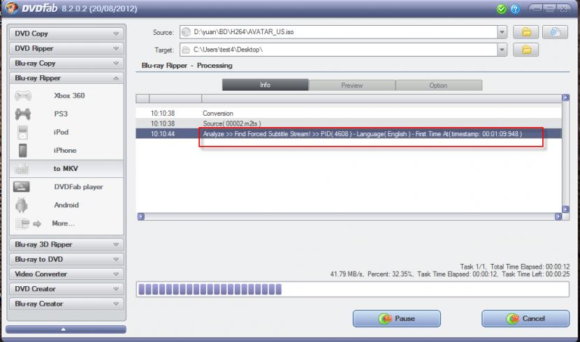 I don't now if this is a DVDFAB issue or a LAV filer issue. I am using LAV filters in order to play the MKV s through Windows Media Player. This is the main reason I am converting to MKV s to eliminate the need of external players. I have the forced subtitles checked in the LAV filters but they don't appear when I playback the movie i.e. when John Carter first meets the alien.