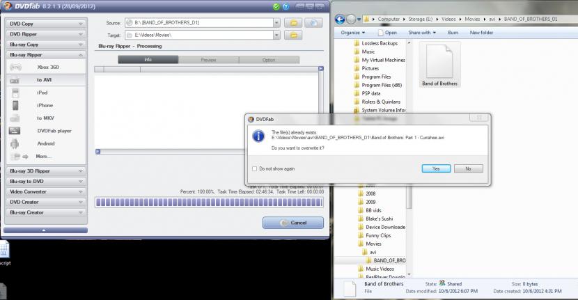 I'm using a trial of BluRay Ripper (trying before possibly buying), and all the rips I do of Band of Brothers go wrong. I can't help but think that my two problems are related.