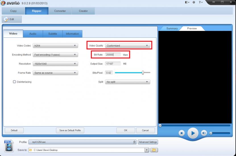I've noticed in my tests with DVDFab 9028 that mp4 encodes using the h.264 encoder are not obeying the bitrate/filesize values that are used in the DVDFab advanced encode settings. I would expect to see "some" varience from the target values, but the results I'm seeing are WAY off, with the resulting files having average bitrates and file sizes that are about HALF -- or even less -- of the values that were entered.