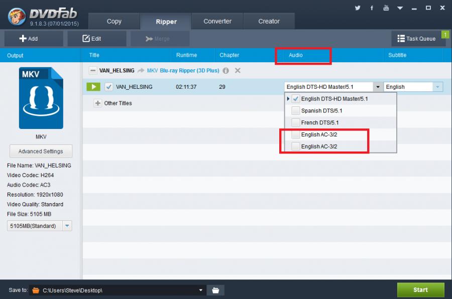 I have tried repeatedly to RIP "All The Presidents Men" DVD into MKV but continue to get Robert Redford narrating the movie. I've tried English, forced subtitles, render direct to video and English, Forced subtitles, Remux into file with the same Robert Redford narration.