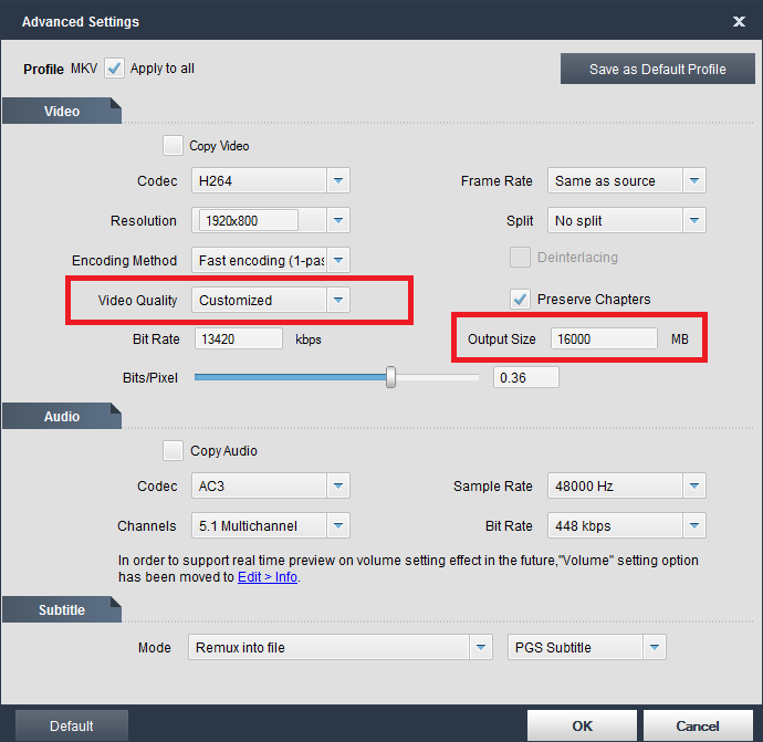 i'm having issues trying to rip a blu ray disc (spiderman 2). For some reason, the rip comes out to a small mkv file (5 gig). I'd like a mkv around 12-15 gig.