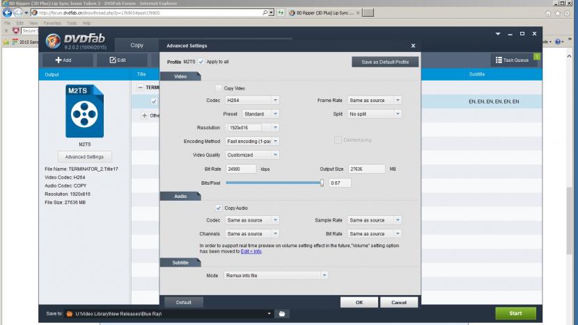 Per Signals' request, I am starting a new thread for a lip sync issue ripping Taken 3 using version 9.2.0.2. The lip sync is a few seconds off by the time you get to the end of the movie. The logs are file attached. Note that with version 8.2.3 the lip sync is fine but the subtitles are off.
