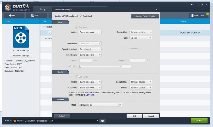 I disabled AnyDVD and tried it again with the same results. I tried two different playlists (800 and 801). Note that I am using the copy audio option when I have issues. If I do M2TS passthrough or select AC3 audio, there are no lipsync issues. For playback I tried VLC and a WD Live streamer box.