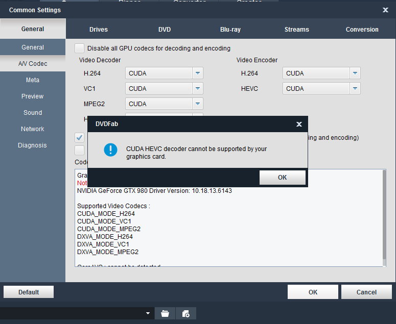CUDA H265 does not support on Windows 10, it's the system but not DVDFab.