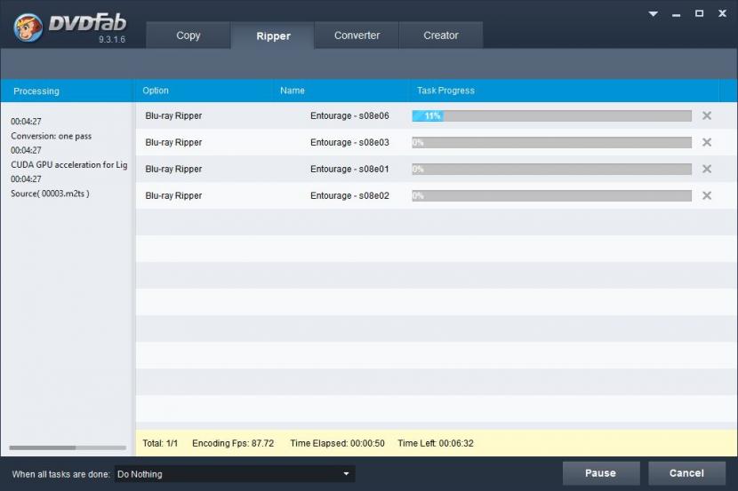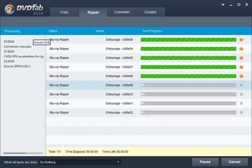 I have noticed here lately that when I try to rip more than five titles off of one or more discs at the same time, BD Ripper seems to go into never never land.