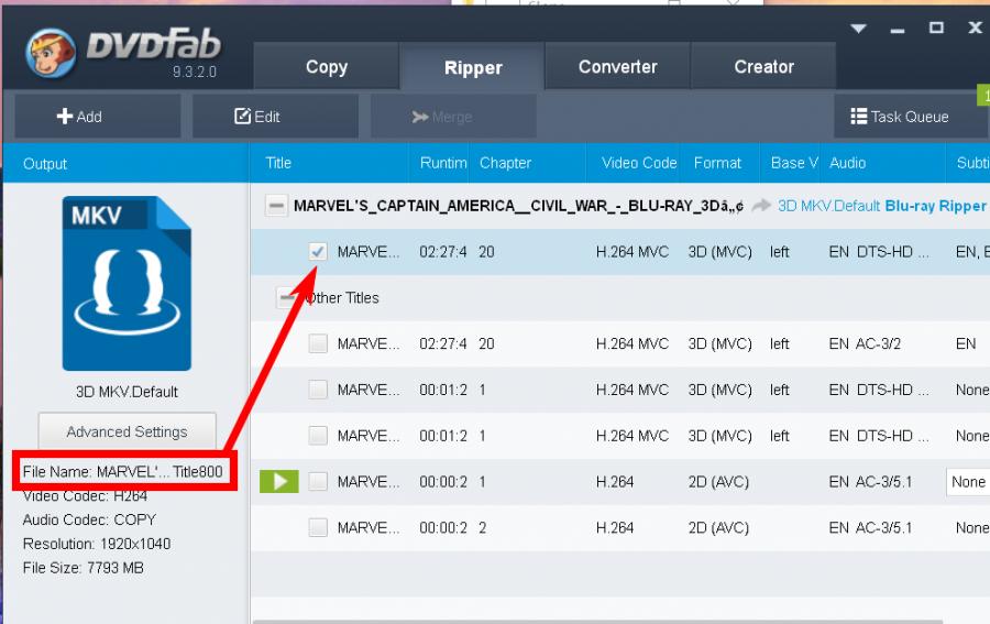 I am using the latest version of DVDfab, 9.3.1.9. This is a retail BD disk that I bought from Amazon. I am using the default track that DVDfab selected, and I am ripping to MP4.