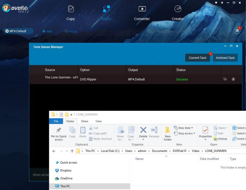 Retried a "Lone Gunman" episode (5 on disc) to see if it is the number of series on each disc. Same no file generated issue even with "default" settings.
