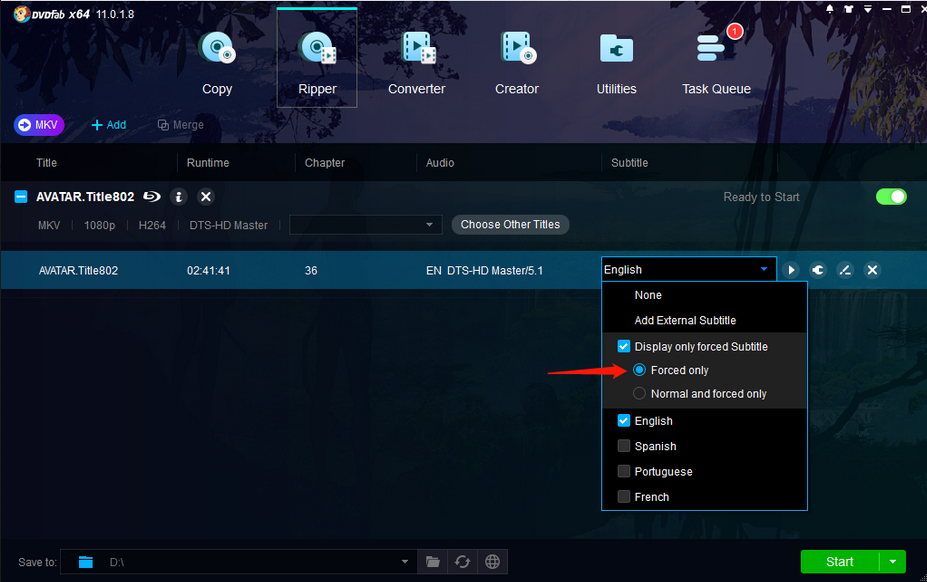 I'm ripping Game of Thrones on DVD with DVDFab 11.0.1.5. I can't seem to figure out how to get subtitles for just the translated dialogue. So I don't want subtitles all the time, but I want to see the English translations for Dothraki, Mereen, etc. I'm ripping using the "iPad 2" profile so that I can bring them into iTunes as a single file.