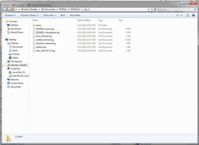 Attaching the dvdfab_internal.log in case there's anything in there to indicate why it is doing this. Also screenshot of the error pop-up and a screenshot of the other logs in case I need to upload a different one.