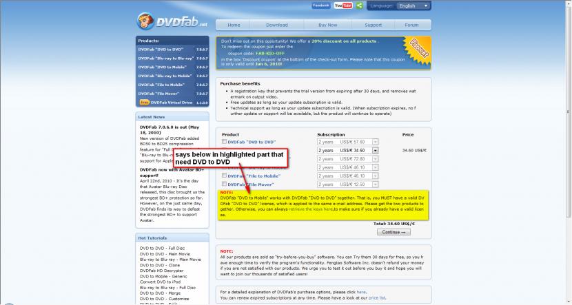 When I click on about, it says that I am licensed for 2 more years for DVD to Mobile, but under "Enabled" it says "No". I have re installed and re-entered my reg key, and it still wont work.
