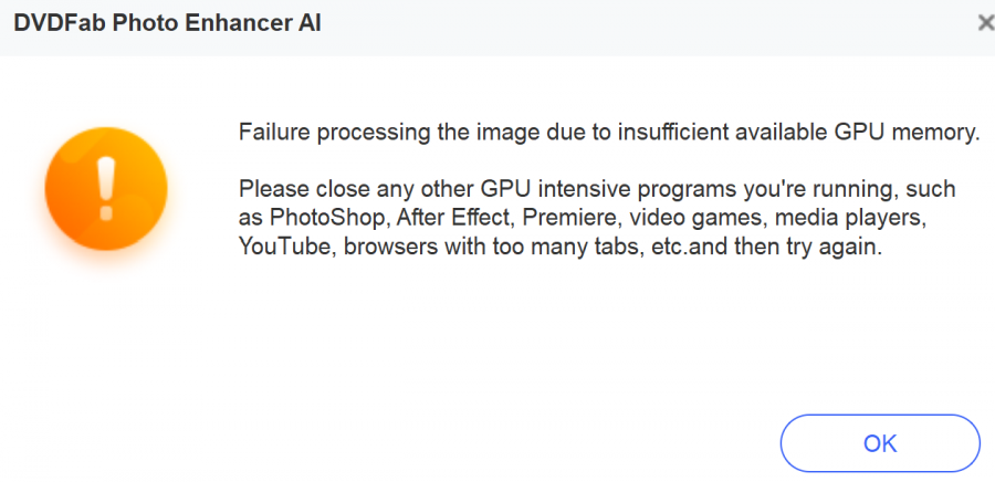 I have tried to use the application 3 times now (Photo Perfect option) and with nothing else running in the background I get the same error message!