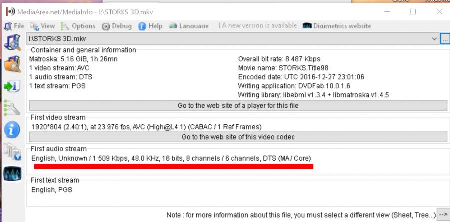 DTS master 7.1 is reported as 5.1 in Fab media player same movie in Power dvd reported as 7.1.Movie tested was a audio copy side by side MKV of Storks 3d log confirms audio copy worked.