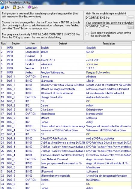 For who is interested I found a very interesting freeware application for reading DVDfab sofwtare english and local language, compare which strings are missing, edit them and save.