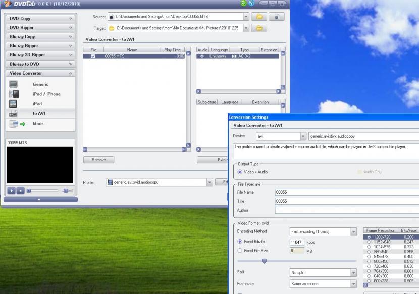 I have updated to 8.0.6.5 and followed all the profile selections but still no video when converting from .mpg to .avi. Conversion to .mkv works OK If I go back to an earlier version of DVDFab (version 6) that also works fine for conversion to .avi