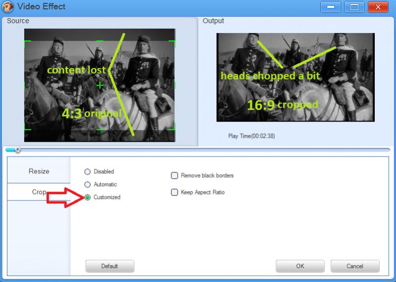 Keep in mind that doing this (4:3->16:9 cropping) is not a designed feature of DVDFab, Fab is just designed with the flexiblility that allows you to do it using portions of other features.