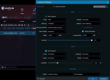 I have the problem that despite the adjusted setting, the size of the file is always the same. Is always around the 6 GB. no matter what I set. Full scale to the right, about 21 GB are displayed. Results about 6 GB. Is unfortunately so with all films in recent times. Films run without mistakes and are complete. Only hold no larger than 6 GB. As I said, it is as if the attitude is not on "adjusted", but on "high quality". Funny way it is the other way around. Yesterday I wanted to rip a movie in 720 P and adjusted size to about 3 GB. Was also 6 GB in size. Funny. :-)