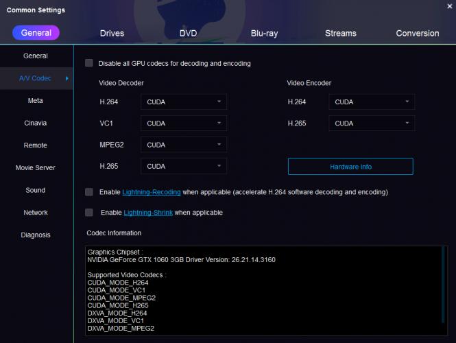 In the A/V Codec box the only 'error' (if you can call it that) is" CoreAVC: cannot be detected". I have that disable 'GPU acceleration unchecked and all the categories are listed as 'CUDA'.