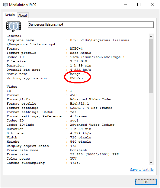 Another attempt to get things done right (following the same procedure, previewing before processing) led me to a weird situation: I could convert the DVD to an MP4 with DVDFab but the final file ended up with 3,42 GB and only 29:34 in duration.