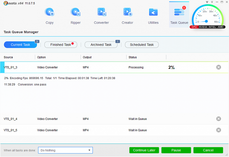 And sometimes it gets stuck just while trying to read the DVD, I click a lot of times on the Cancel button TNA, the only way to stop it is via Windows' Task Manager.