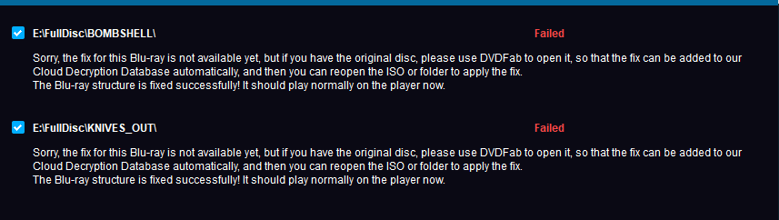 I double-checked with our developer, the two movies doesn't support to BDFix at the moment.