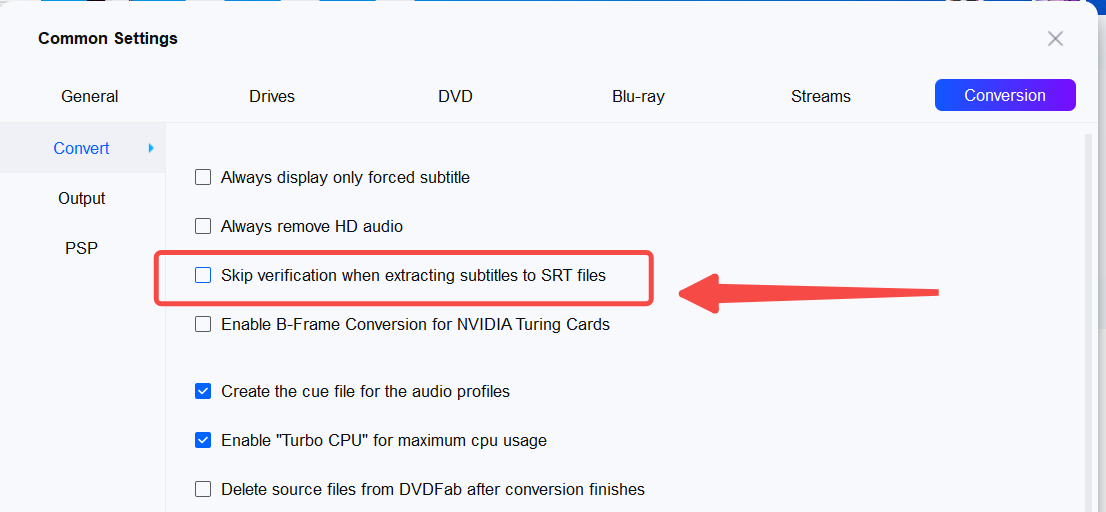 Please go to the Settings panel, under the Conversion tab uncheck the option "Skip verification when extracting subtitles to SRT files".