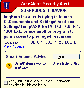 Also see attached, I did uncheck the three boxes as I already have shortcuts in Start and a Quick Launch icon (my preferred method for starting IB). But it looks as though ASKINSTALL CHECKER still wanted some sort of access, I just clicked Deny.