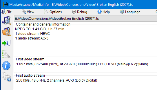 And here is the MediaInfo from the last converted file I did that DOES have the problem: