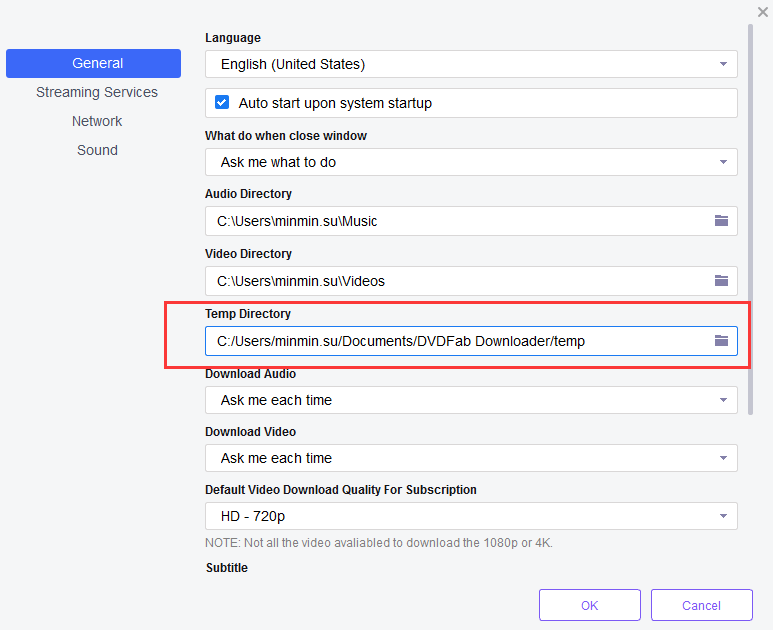 I'm running DVDFab DRM Downloader v3.0.2.1, and it is not respecting the setting for the video directory, but instead putting everything in Documents\DVDFab Downloader. This is an issue for me because my Documents folder is in OneDrive, so it creates a bunch of unnecessary network file transfers. I have it set to N:\Video\DVDFab Downloader, but the program seems to ignore that.