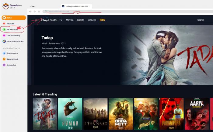 Also the second point is that when i press on the Disney+ icon at the Vip Services, streamfab brings me also to hotstar: