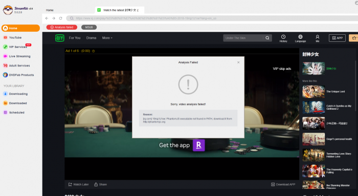IQ.com has a lot of great Chinese movies. Would be good if they were supported. Whenever I try to load one of their movies in Streamfab I get "Analysis Failed".