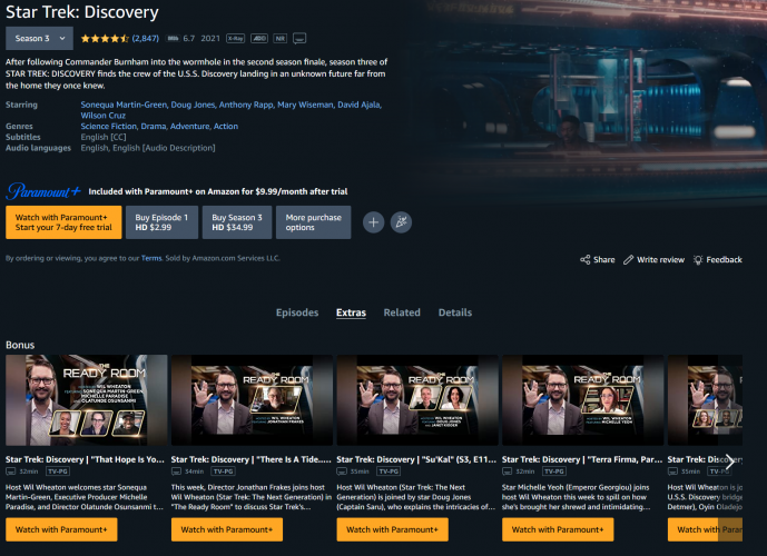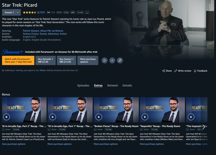 I'd like to request support for Amazon Prime Video extras. For example, Star Trek: Picard Season 1, or Star Trek Discovery Season 2-3.